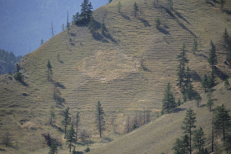 West of Kamloops,the terrain turned arid. The tour guide stated that they get less than 8 inches of rain per year due to their location being in the rain shadow of the western ranges. This area is very similar to eastern Washington state.