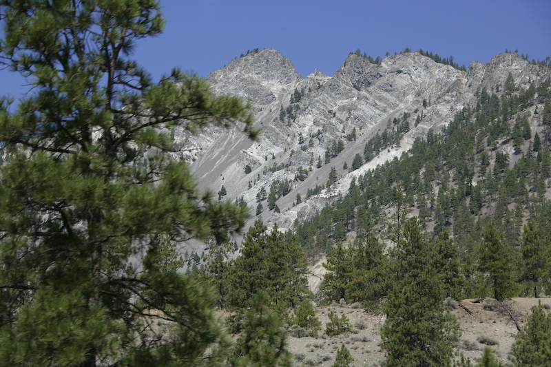 We crossed into a region of taller mountains that were producing large amounts of debris on their faces. Note the scree fields at the base of the cliffs.
