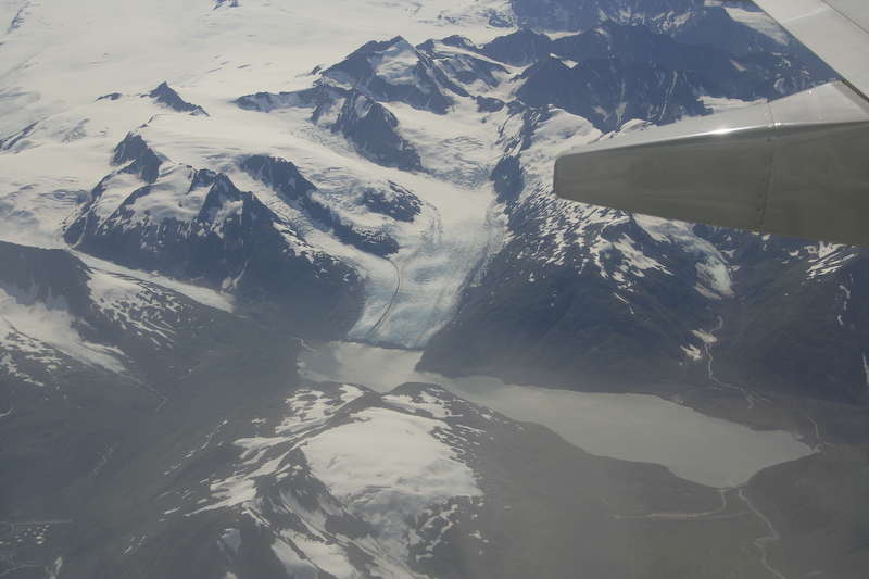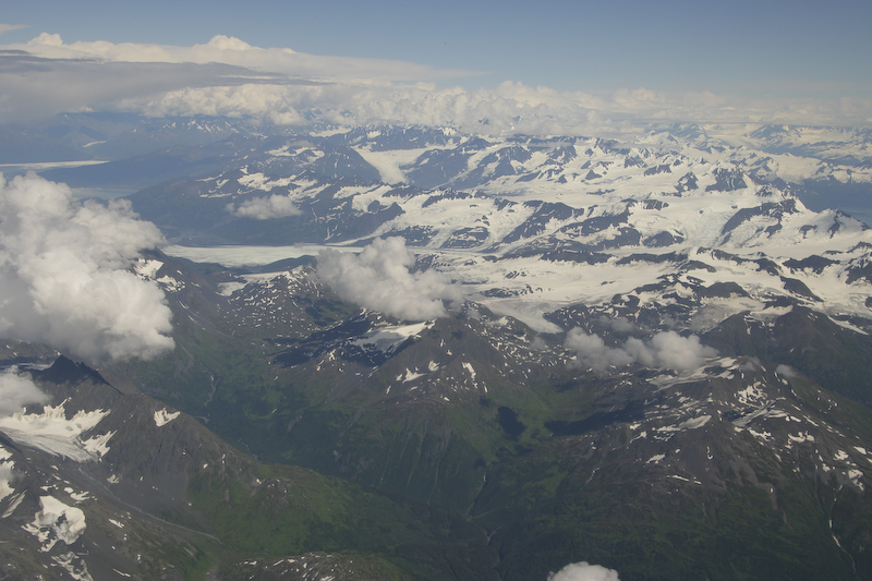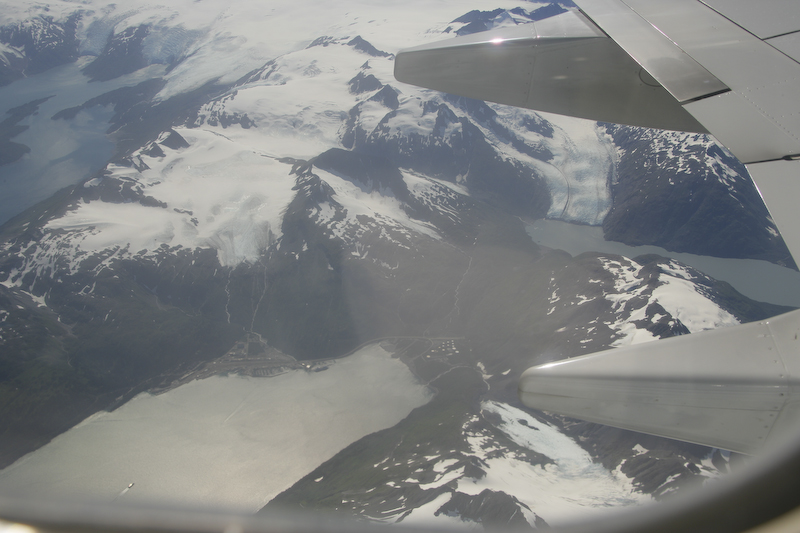 Our stay in Vancouver was nice, but short. There was much to see but the weather sucked. It was raining all day at some level, so we hiked around downtown and then took in a movie. We left for the airport the next morning for our flight to Anchorage. The flight was uneventful (the best flights are...) and both Kathleen and I dozed for most of the flight. As we neared Anchorage, the cabin was abuzz with conversation. When I awoke, I looked out the window and could not believe what I saw. The views were astouding. I had heard that the area was beautiful, but even with that expectation, it did not prepare me for the sight. The photos below are what we saw.