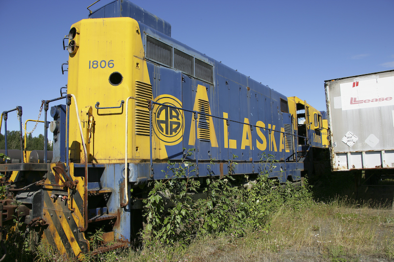 Past the fishing area was a rail yard for the Alaska Railroad where we spotted this abandoned locomotive.