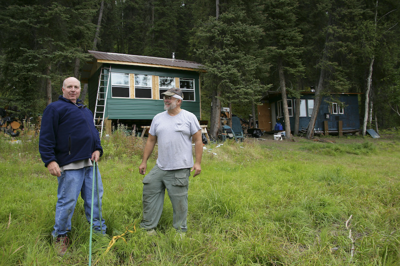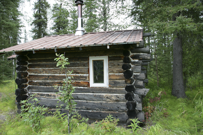 We stopped to see Dan's buddy John Ryer. John has the cabin just upstream, perhaps a mile from Dan's place. He has both a new and an old cabin. The old one is intentionally small so it can be easily and rapidly heated. The new cabin will be better insulated so it should heat nicely too. Unseen in this photo is his .44 magnum pistol sitting on a stump next to the cabin. Bears are a problem here as you will see in the photo below.