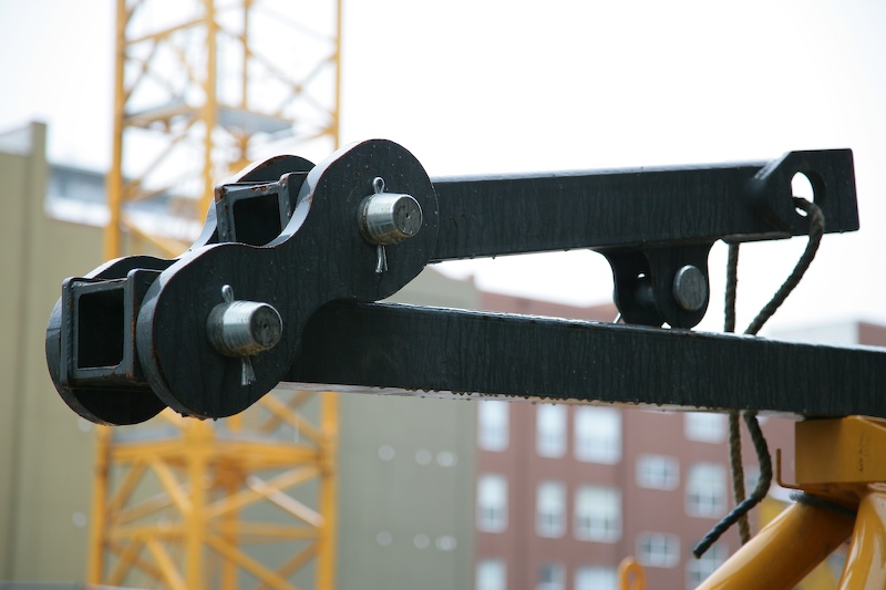 Attaching the last boom assembly and allowing the main boom to take a strain. Assembly is essentially complete.
