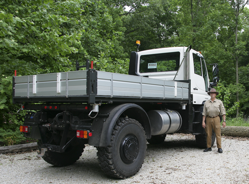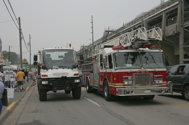 Both Kathleen and I are race fans and had been to Indianapolis before to see the Formula One race. We have a unimog buddy, Dan Johnson, who lives close to Indianapolis in a town called Crawsfordsville. So, we imposed on Dan to host us for the Indy 500 race. Dan was nice enough to not only put us up in his ranch, but he also lent us his brand new Unimog 500 to use. We made several trips to Indianapolis both on race day and the day before. We had a great time. Not to mention getting plenty of respect in that 'mog.