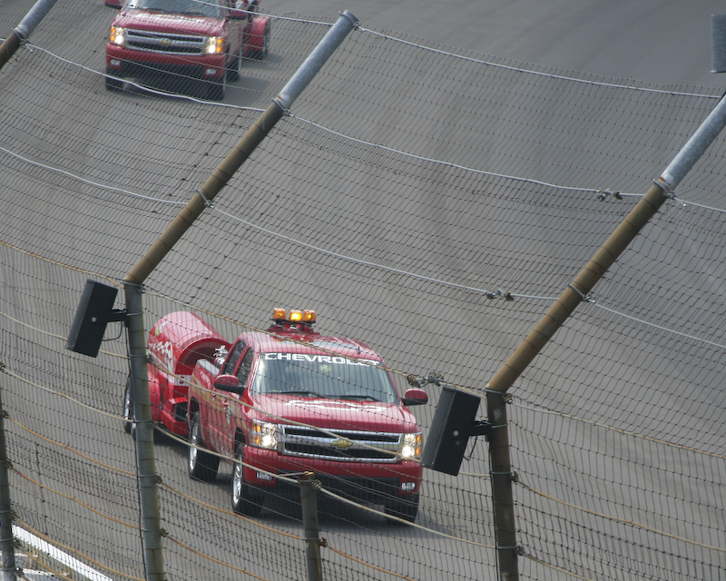 Ugh, another crash. Again, without injury. Later, after about 100 laps, the rain started in earnest. The race was stopped due to the deluge and about 1/2 of the crowd left. We did too.