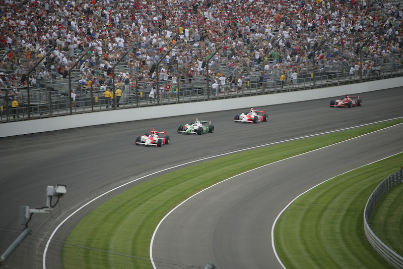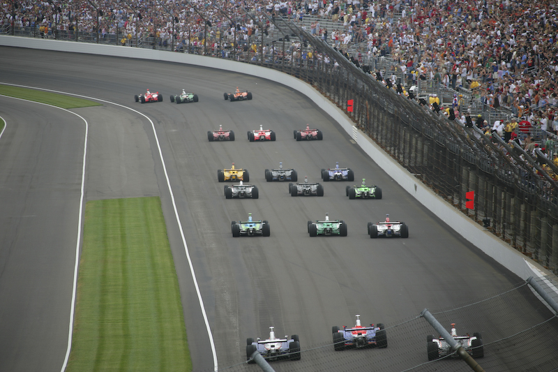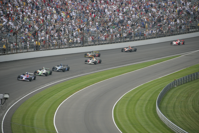 The Indy 500 consists of 200 laps on the oval track. It only takes a few laps before the cars get quite spread out.