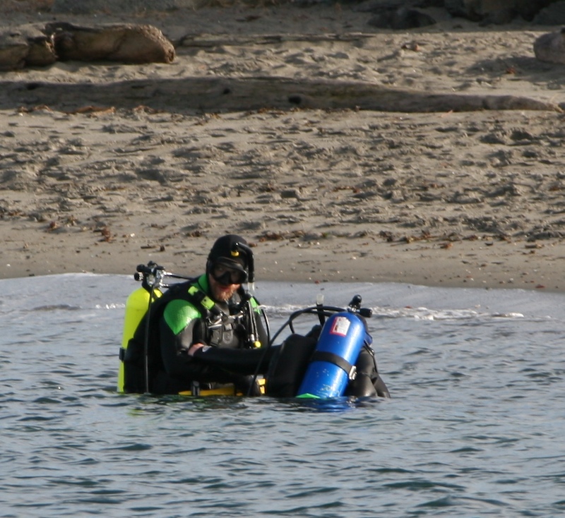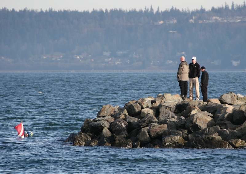 On the north side of the terminal is a diver's park. This fellow is helping his buddy prepare before they go into the freezing water.