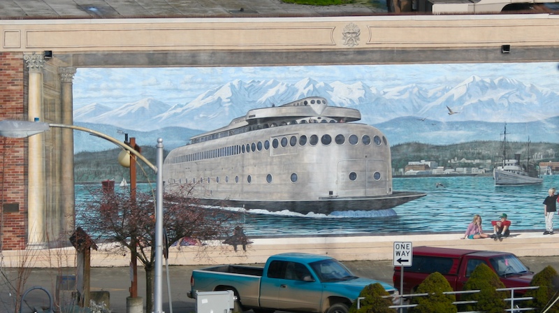 Port Angeles is a working town, but with a touch of class. We saw this great mural on the wall of one of the buildings depicting an early ferry that operated in the area.