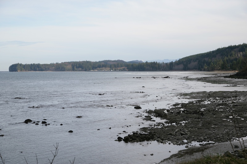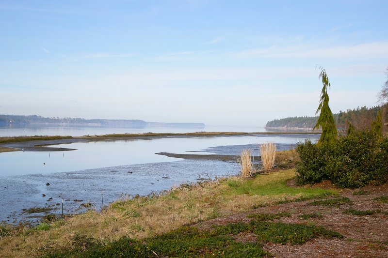 We rolled through at low tide. Here is a view looking north in Sequim Bay.