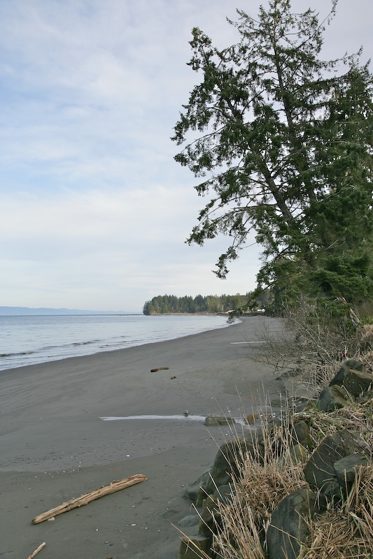 After we left Port Angeles, we left highway 101 and turned onto state route 112. There were a number of nice sandy beaches right next to the road. With no wind, the waters of the Straight of San Juan de Fuca were very calm.