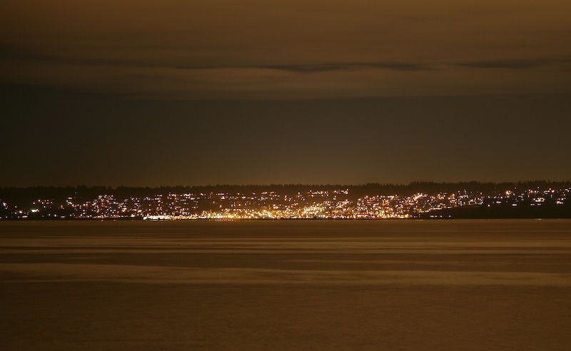 It took us 4 hours to get back to the Kingston side of the ferry. Under challenge from Kathleen, I got this 30 second shot of Edmonds from the parking lot in less than 2 minutes of assembly and setup.