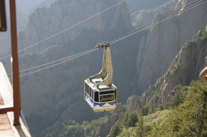 We finished at Petroglyph NM the headed to the Sandia Tramway. The tram is billed as the longest continuous tram and ascends the full height of the Sandia Crest to an altitude of just over 10,000 feet. Here is a view looking generally to the southwest from the top. The visibility was somewhat hazy but the temp was nice.