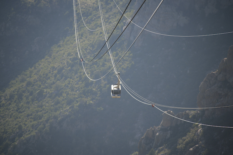 There are some very long spans on this tramway. Note the sag in the cables. This car is well below the peak between station one and two en route to the base.