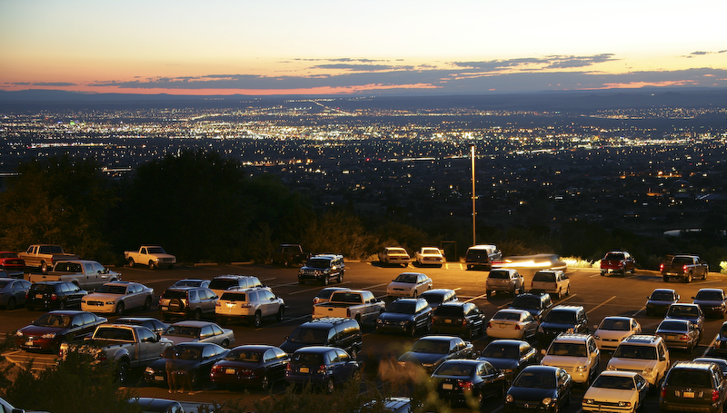 A good portion of our first day was spent on simple travel. We headed to Albuquerque via plane and then got a rental car. Our plan was to stay in the "Old Town" area of Albuquerque and see Petroglyph National Monument and ride the Sandia Tramway to the top of the 10,000 foot Sandia Crest. Of course, no trip to this area would be complete without Mexican food (which we had in copious quantities). And, as with nearly all trips, the longest journey starts at the rental car counter.