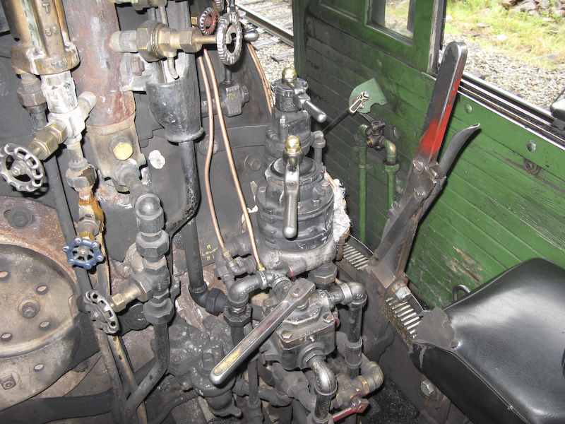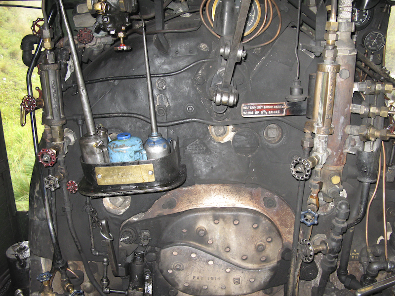 We gave the camera to the engineer to get these shots. The cab is cramped and hot and a maze of pipes and valves.