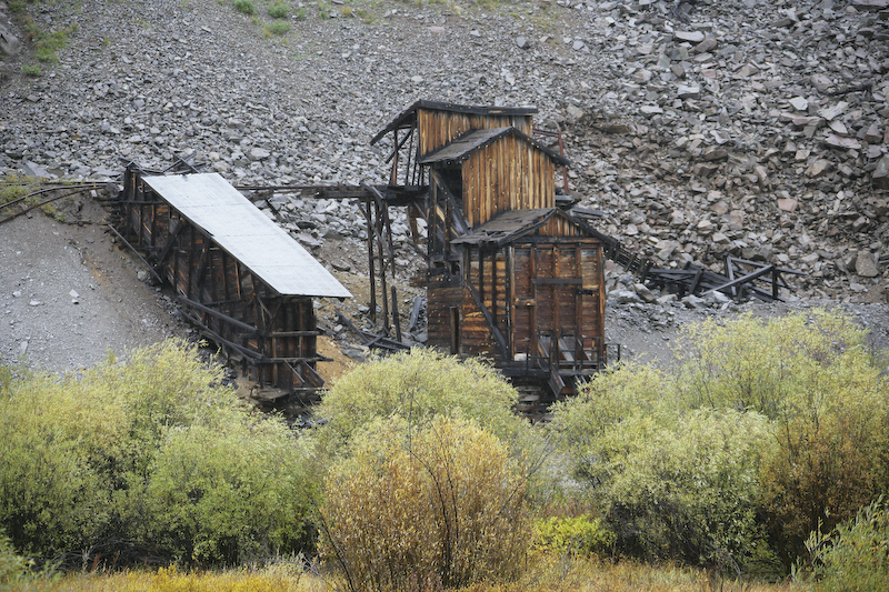 The mountains around Silverton are riddled with mines. Here are the ruins of a silver mine visible from the tracks.