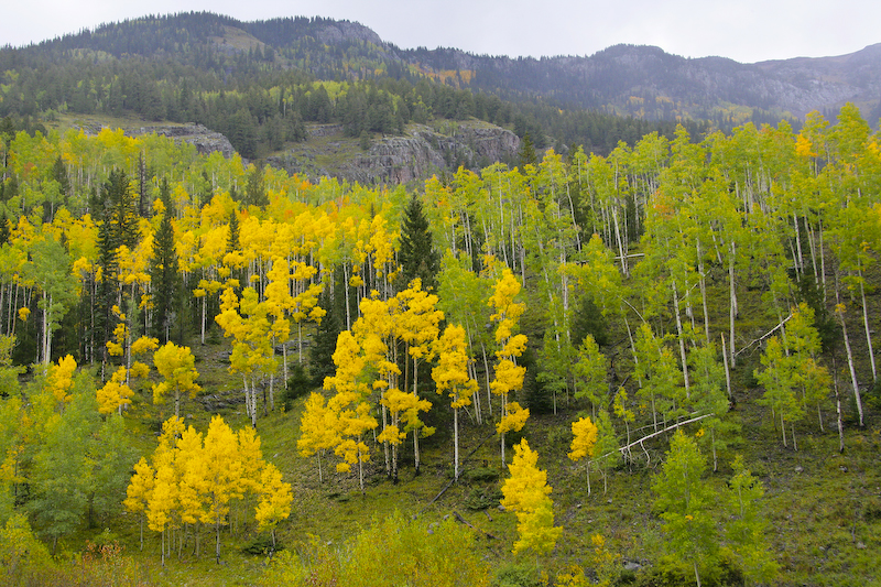 The aspens were starting to turn color. Sadly, the flat lighting did not show them with their typical vivid colors.