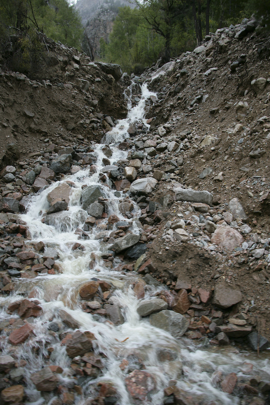 The heavy rains were spawning waterfalls in most of the side canyons.