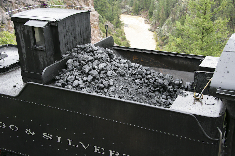 These steam locos were fired from local coal. This soft coal is mined a few miles west of Durango and is effective, if just a bit dirty.