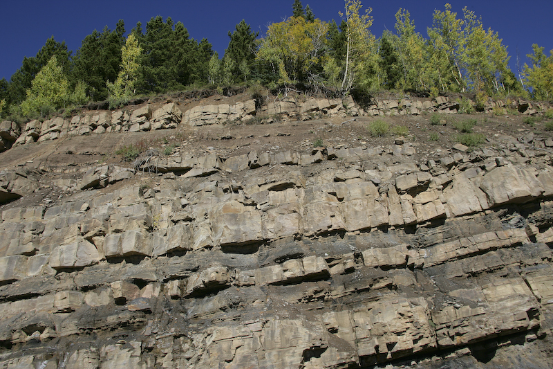 A view looking to the northeast from just pass the crest of Coal Bank. We were lucky in that the weather was much better than the previous days and the strong sunlight showed the Aspens with their fall colors.