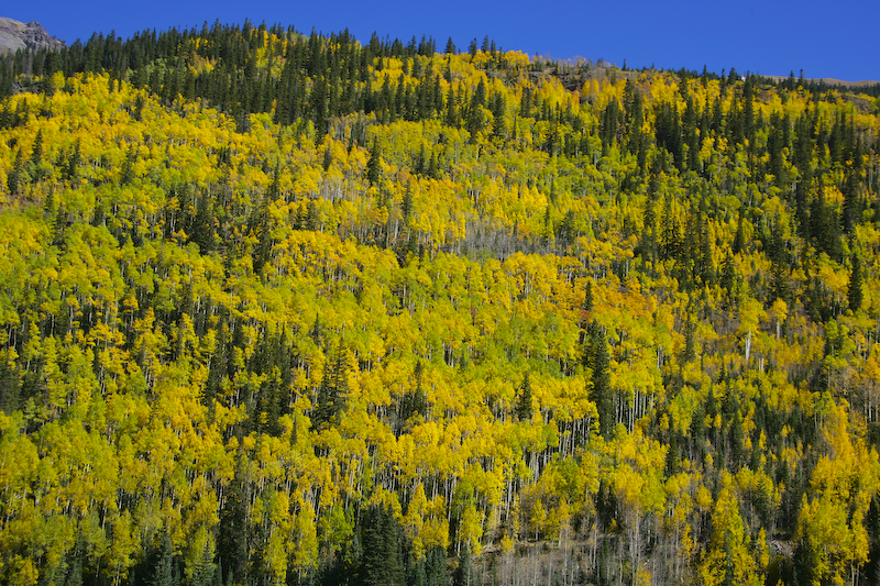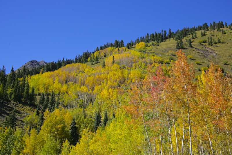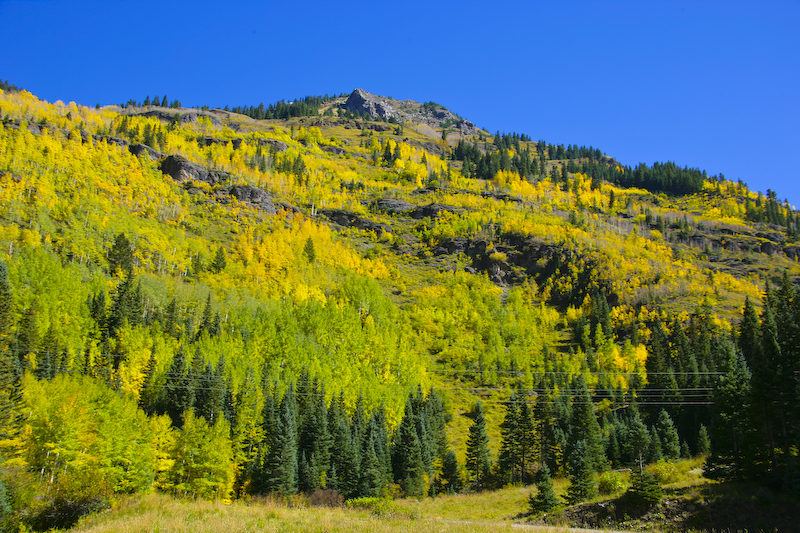 Approaching Red Mountain Pass, we rapidly gained elevation. With the elevation change, the colors of the trees became more vivid. We were here near the peak time which we were guessing was in a few days.