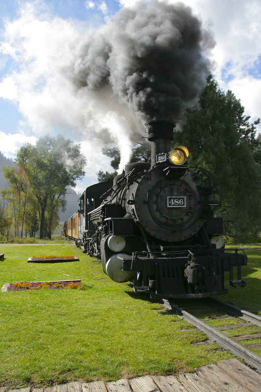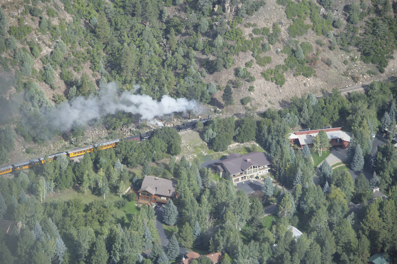 As it turn out, we overtook both steam trains that were heading up to Silverton. This is a different train from the one in the previous photo and is carrying other members of our soaring party.