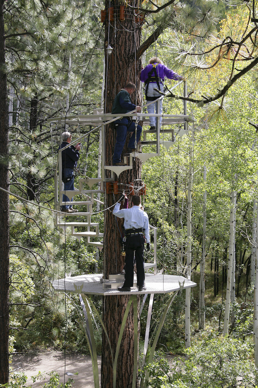 On some of the platforms, you had to climb from level to level. At one station, we were hoisted 80 feet vertically to the launch point.