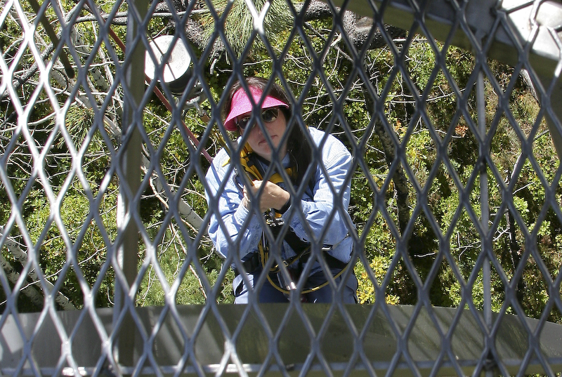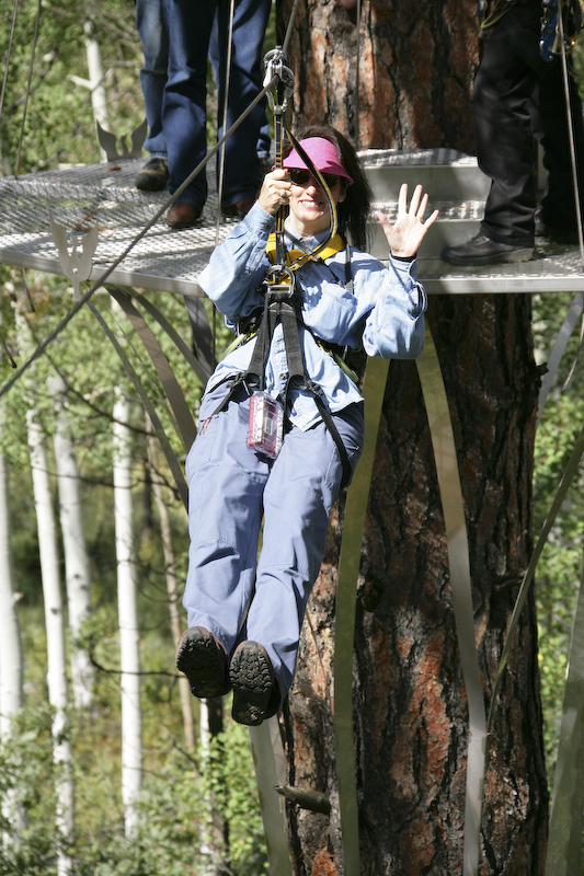 Kathleen on one of the early runs. The first runs are short and not very high in the trees. Later runs were long, some in excess of 500 feet with substantial drops between stations resulting in high speeds.