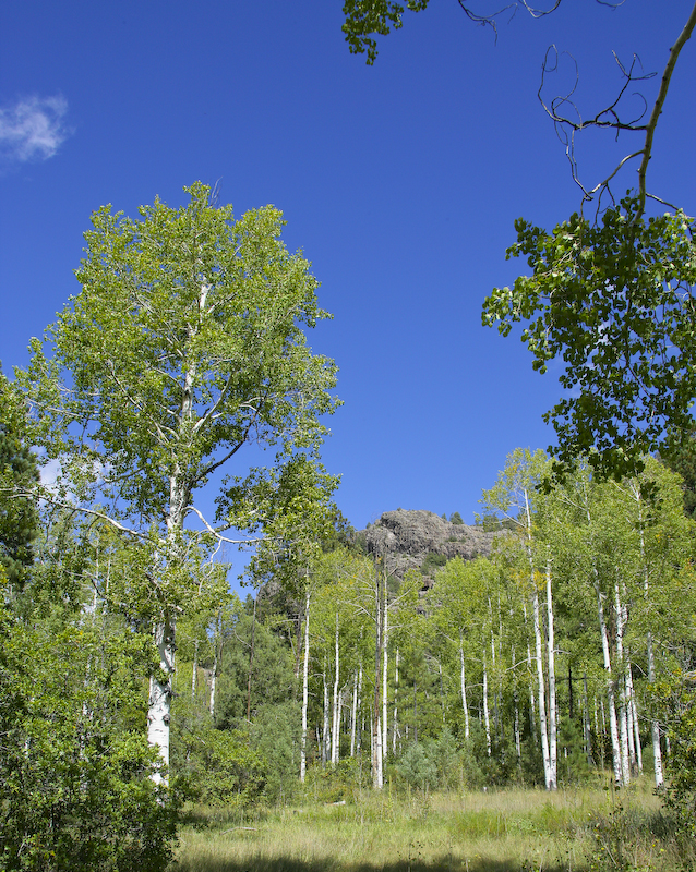 Once on the ground, we headed for lunch. Here the Aspens look quite nice against the blue sky.