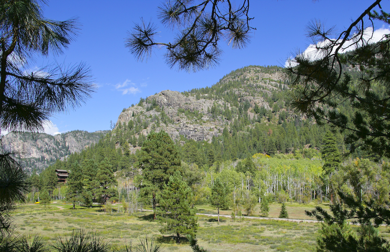 Just on the near side of the mountains on the far horizon is Pagosa Springs. This will be our destination in about 3 days. All the mountains in the Durango area show evidence of stark bedding of the sedimentary rocks due to uplifting.
