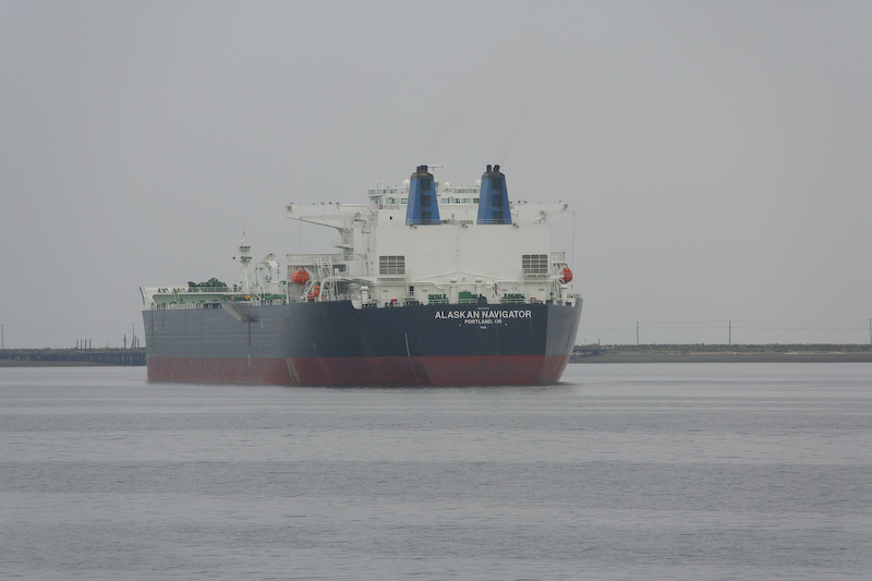 There was a large ship anchored in the Port Angeles harbor. This looks like a tanker.