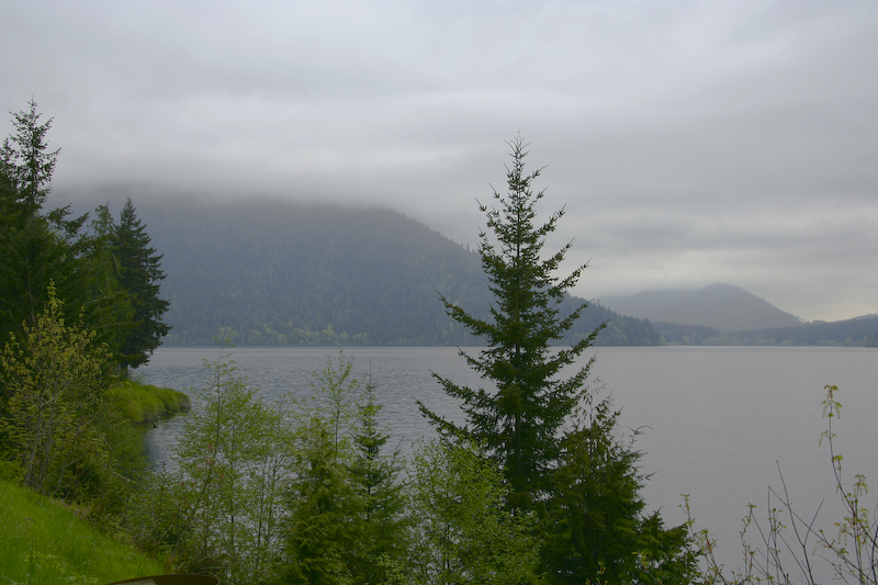 Here is view of Lake Crescent in Olympic National Park. These houses must have been grand fathered since the park system does not allow homesteading. This was a nice calm morning, but very overcast. We had significant drizzle all day, which is no surprise in this area.