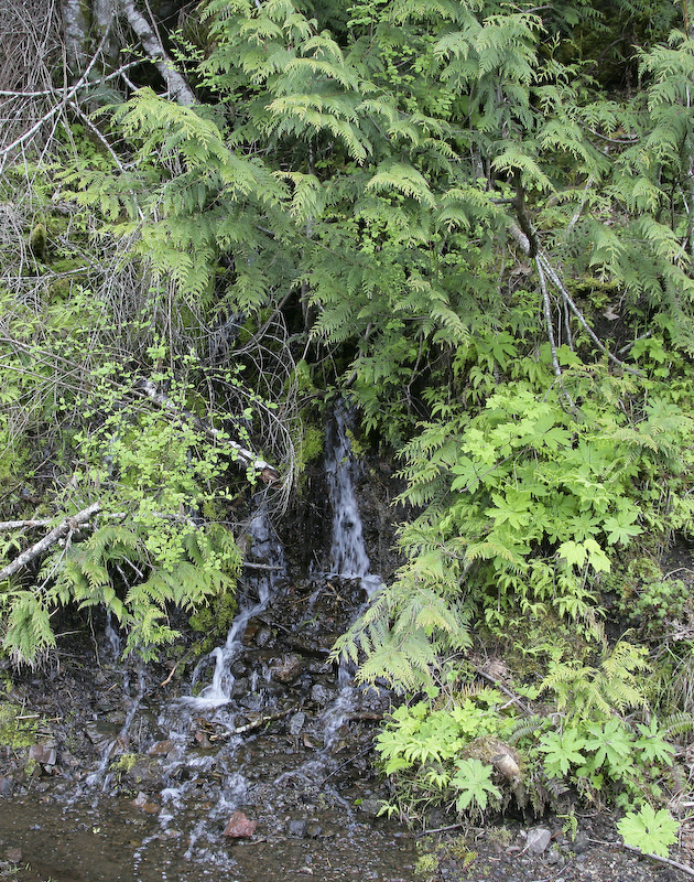 One common attribute of this area of the world is the presence of water (a rare item in southern California). We stopped on the side of the road to shoot the lake and spotted this mini-waterfall. Note the thick ferns and ground cover.