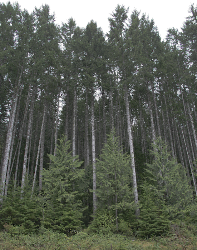 The forest in this area is very dense. These trees were tall and straight which makes them valuable to the logging industry.