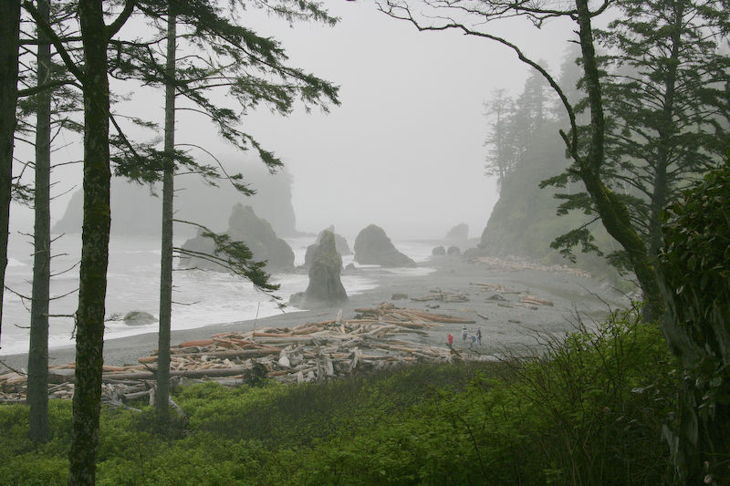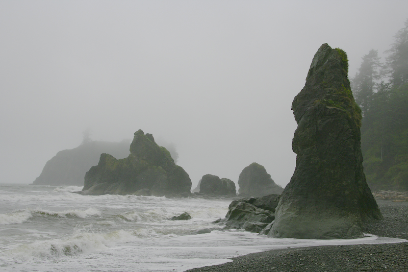 A view of Ruby Beach and the "sea stacks" of mini-islands. The weather was somewhat nasty as the mist was soaking everything, including my camera. By design, it is "weather resistant" but I always wonder.
