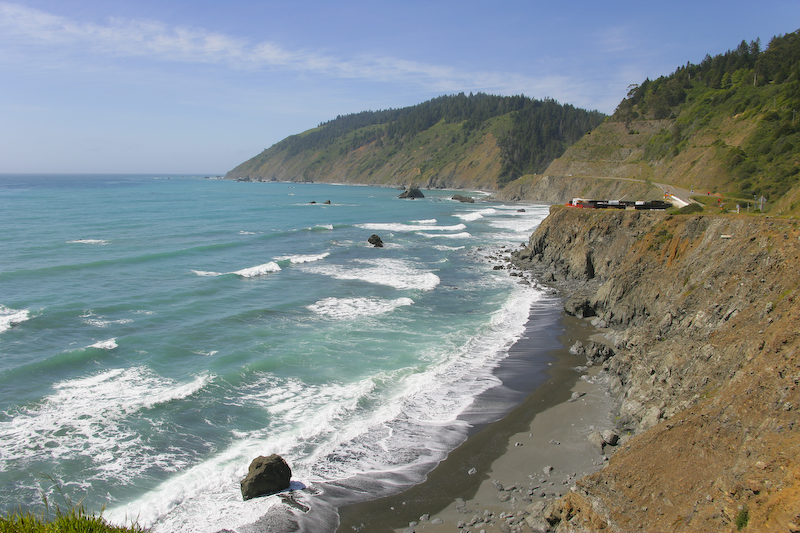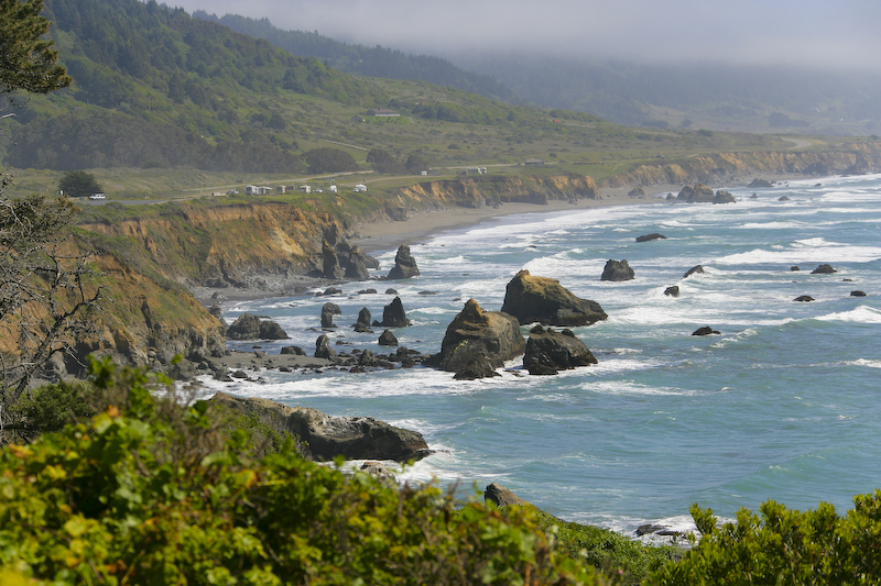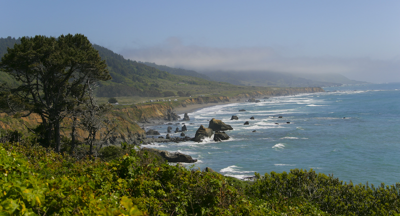 Once highway 1 came out of the hills and hit the coast, the weather cleared up quite a bit. This shot was taken from the junction of 1 and the coast, north of Fort Bragg. Note the nice house on the left of the photo above.