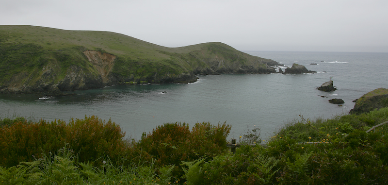 We had a great night in Crescent City. The hotel was nice and the restaurant was very good. Next morning, we headed south along highway 101. Sadly, the foggy weather had returned so we had reduced visibility most of the day. We were in and out of the fog repeatedly and were running with our fog lights on. We traveled south on 101 until the intersection with California route 1. We took 1 and headed toward the coast. Highway 1 is very narrow and twisty, so we were loving it. The photos below are what we saw.