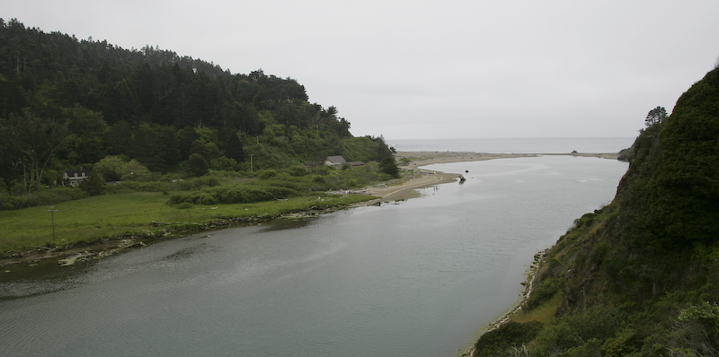 This is the highway 1 bridge that crosses the Albion River. Only the center span is steel, the balance of the structure is wood.