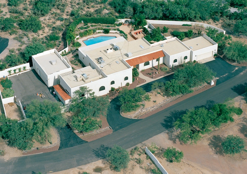 Dad bought an ariel view of his place. Although this was taken several years ago, before some significant remodeling actions were completed, it gives a sense of scale of the "estancia". Pusch Ridge, a major geological structure of the nearby Catalina Mountains are to the top of the photo.