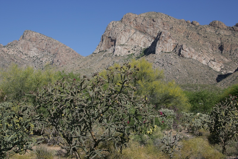 We arrived at the house early in the afternoon, thus providing favorable lighting. This is a view of the "backside" of the Santa Catalina Mountains from the parent's back yard. The ridgeline visible in the distance is "Pusch Ridge" on the western edge of the mountain range.