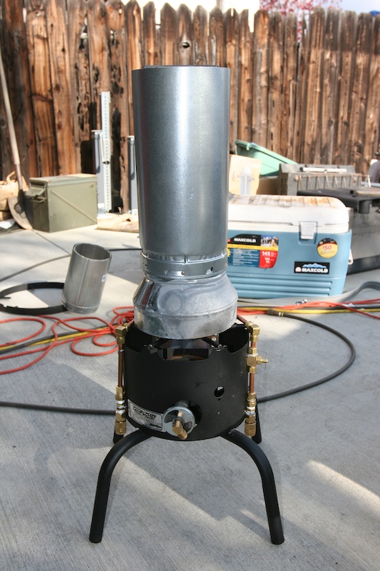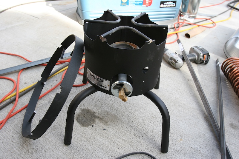 Camp Chef burner that was chopped to provide the burner assembly.