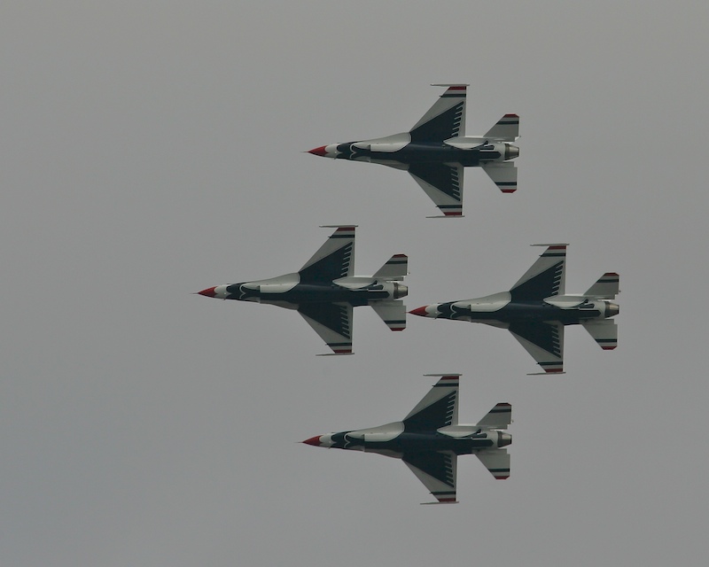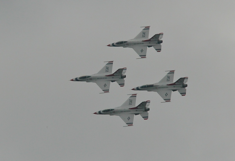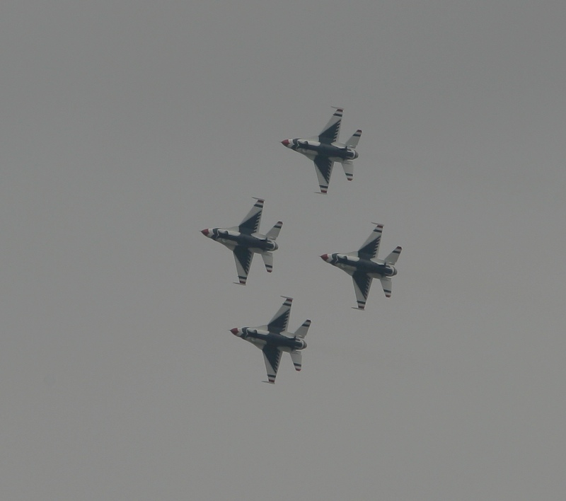 The Miramar Air Show occurred early in the initial construction process and since I was outside with my camera, I got these shots of the USAF Thunderbirds as they performed. Since we are pretty close to the airbase, the flight path of the jets was quite near my house. Here they have the belly of the aircraft toward me as they execute a banked turn in formation.