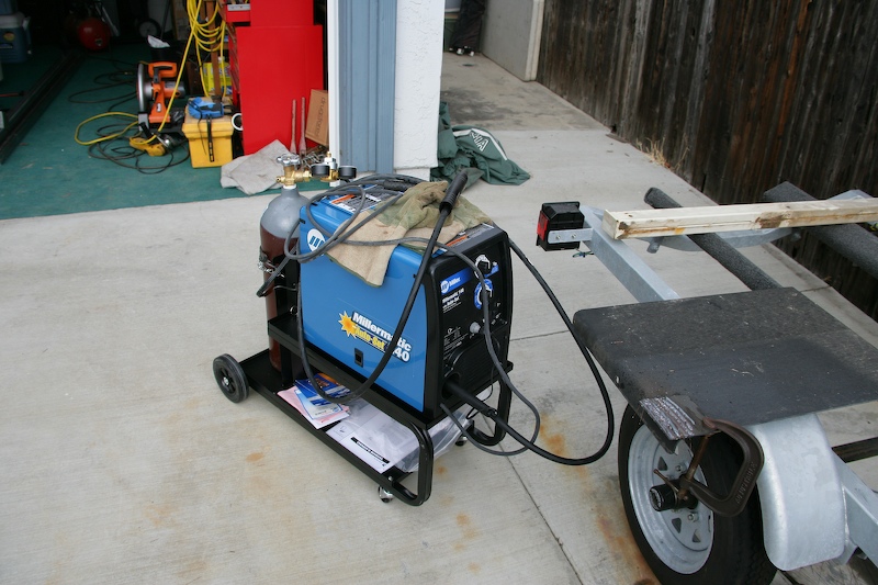 One of the first things that happens during a project of this scope is a trip to the store. In this case, I bought a MIG welder setup, a cutoff saw and some misc. support equipment. Here is the Miller Welder I got and it performed great.