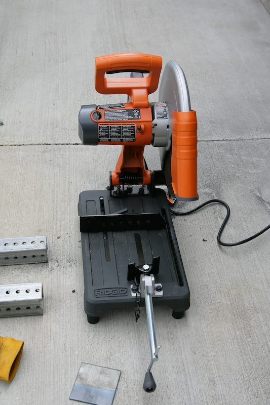 This little cutoff saw will get some hard use. Note the nesting tubing on the left that will be used to build the lifting assembly.