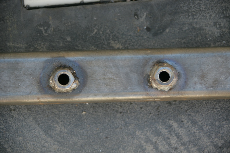Mounting bolts for the frame. Here, I carefully positioned the holes to match the stock holes in the mog frame and then welded nuts on to provide threads.