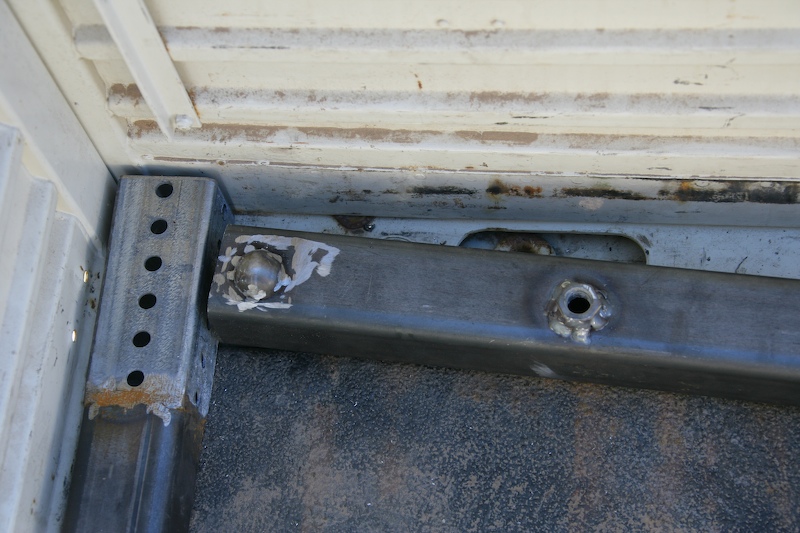 The inside of the front driver's side corner. Note the positioning holes in the bed.