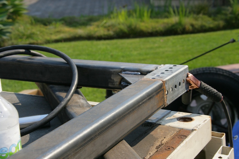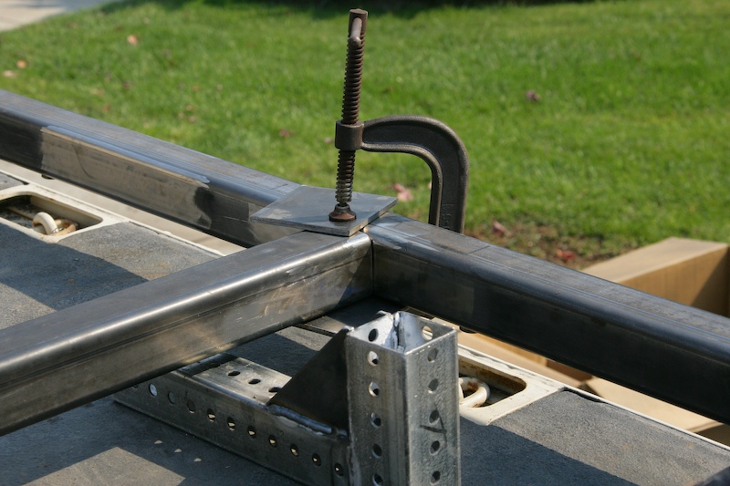 Corner assembly in place to demonstrate how it will work. The vertical tubing will accept the lifting leg with jack assembly.