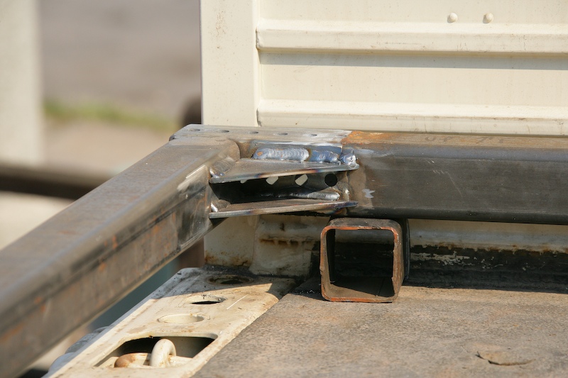 Cross-bed support with gussets and one very shitty weld. Throwing a good bead is not all that difficult if you have a steady hand (which I do not) but it does require CLEAN, CLEAN, CLEAN metal. No grease, oil or rust. That rule was hard learned and many welds were ground out (like the weld to the right of center with the inclusions).