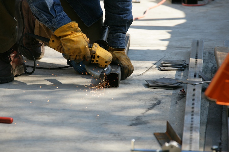 Preparing an end of the tubing for a weld with the angle grinder.