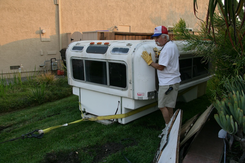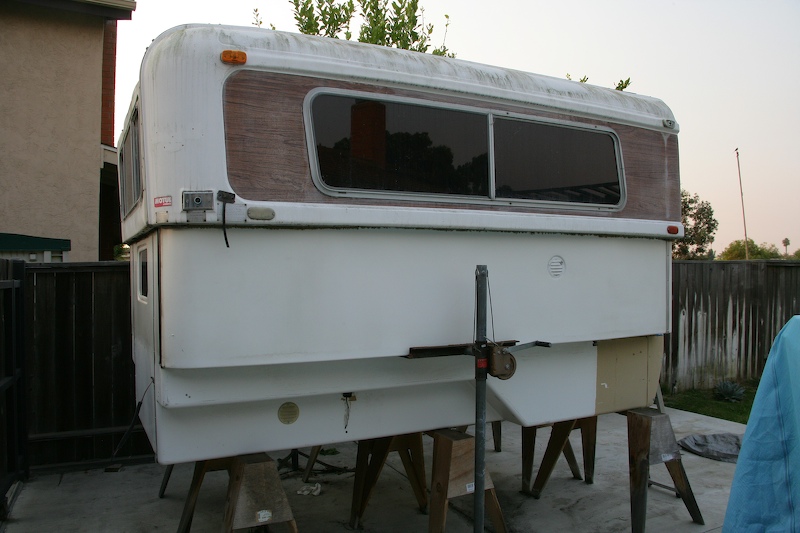 More than 3 years ago, I purchased an Alaskan Camper for my mog. But, due to the demands of work and our travels, I did not have the time to be able to mount the camper. During the intervening years, I considered many alternatives to mounting the camper, but it the end, the best solution was to design and build a metal frame that would sit under the camper body. The frame would be bolted to the camper and to the frame of the unimog as well. The corners would have plug in points (not unlike a trailer hitch receiver) that would allow insertion of the lifting assembly. This turned out to be a complex project that required a ton of welding, metal cutting and general dirty work. I bought the camper from a fellow in financial distress for the paltry sum of $600 delivered. New, these are about $20K, but this camper is far, far from new. In fact, the unit has suffered the hands of many and I am not sure which of the internal systems (stove, refrigeration, etc) work, if any. But, at $600 I didn't really care. So, it sat there in my side yard on saw horses for the previous 3 years.
