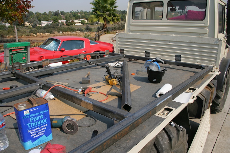 This was a big project. At this point, we are 2 weeks into it and are still doing actions to get things completed. Yesterday (20071029) we completed the attachment of the camper body to the mounting tabs and took the truck for a road test. The camper is not really an issue for the mog as it is well within the weight rating. In several respects, the truck runs better with the camper on than without. One reason is the weight makes the ride smoother and the other is the camper makes the truck a bit more aerodynamic and therefore rolls better at speed.